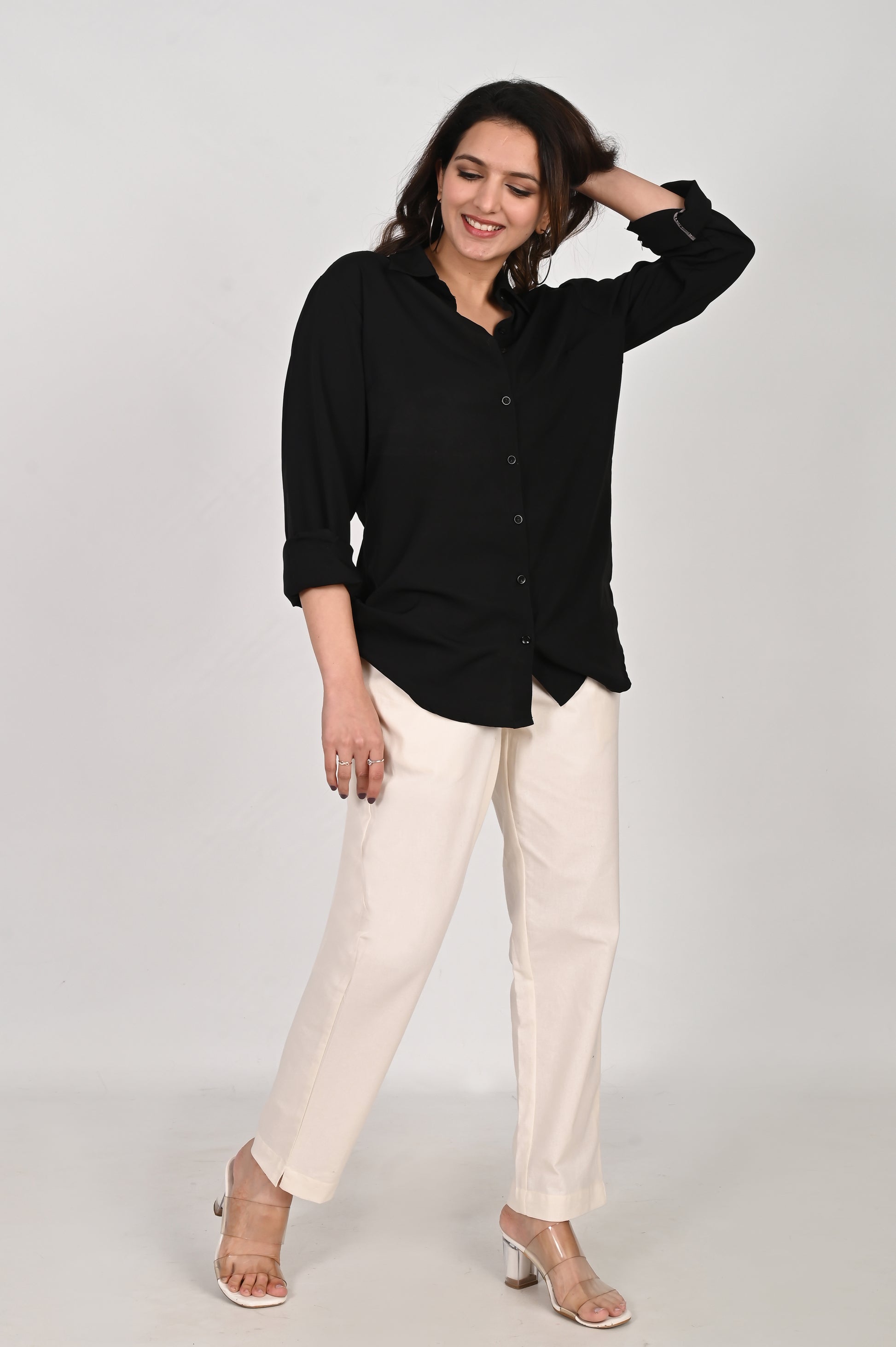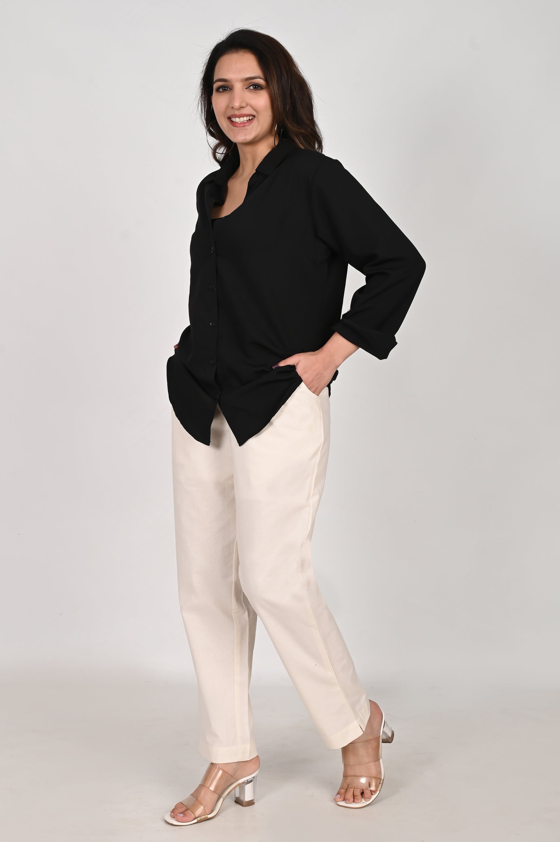 Designed with your convenience in mind, these trousers boast two practical pockets, adding functionality to fashion. Elevate your wardrobe with this perfect fusion of comfort, style, and practicality.